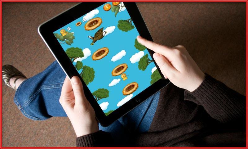 Vous devez entraîner cet oiseau de poussin. Pour l'entraîner comment voler, vous devez appuyer sur l'écran pour la sauter vers le nid supérieur. Gardez un œil sur la position du nid et de la robinet, l'oiseau de poussin sautera vers le prochain nid. Mais si vous vous avez manqué de calcul, l'oiseau de poussin tombera et vous ne la formerez pas correctement.